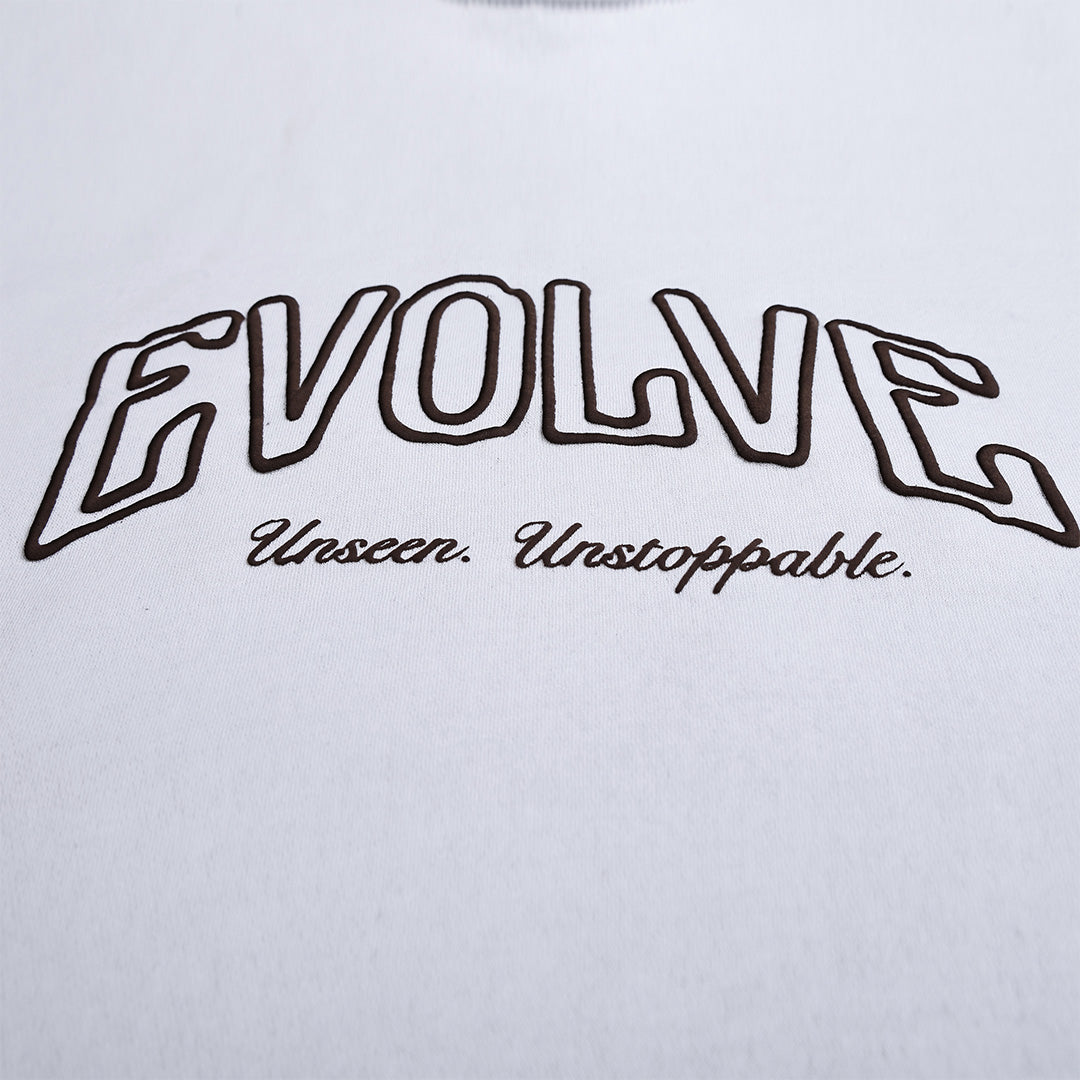 The EVOLVE Hoodie is made for people who are constantly levelling up. Crafted with soft, premium fabric and a clean white aesthetic, it pairs effortlessly with anything. The structured, street-ready fit and bold puff-print detailing give it that subtle standout vibe.